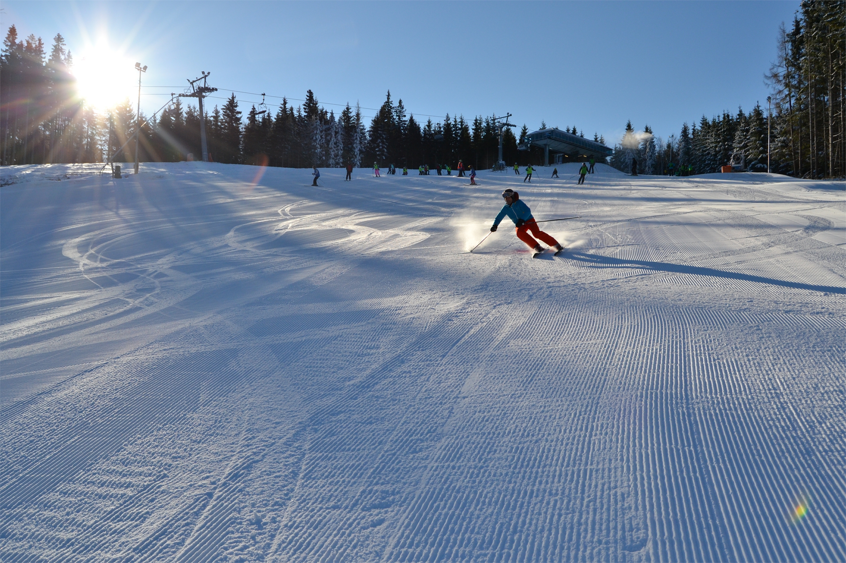 The largest floodlit area for night skiing in Moravia is right here in Karlov, below the Karlov Ski Express chairlift. Great atmosphere and plenty of space on the piste!