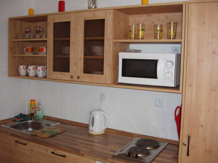 Plně vybavená kuchyně - lednice, el. vařič, rychlovarná konvice, mikrovlnná trouba.