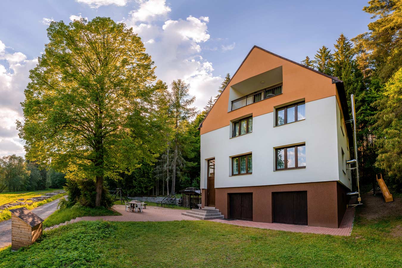 Chatu Smrkovou najdete naproti areálu Ski aréna Karlov. Má pro Vás ubytování v 9 pokojích pro 30 hostů. Všechny pokoje jsou prostorné, mají vlastní sociální zařízení, vytápěnou podlahu, TV i Wifi. Centrální kuchyně s jídelnou v přízemí poslouží k vlastnímu vaření. Prostorné společenské místnosti využijete k setkání, hrám i zábavě. Přímo v chatě se nachází venkovné wellness centrum: sudová sauna, vířivka a posezení. Dále je k dispozici vnitřní sauna pro 4-5 hostů. Vezměte přátele nebo rodinu a rezervujte si chatu pro sebe, je možné si pronajmout pouze celý objekt. Chata Smrková je vedlejší budovou hotelu Kamzík (450 m) lesní cestou. Je možné využít sportoviště, vnitřní bazén i wellness centrum. Stravování je možné dokoupit v hotelu Kamzík nebo v blízkém penzionu Eden.