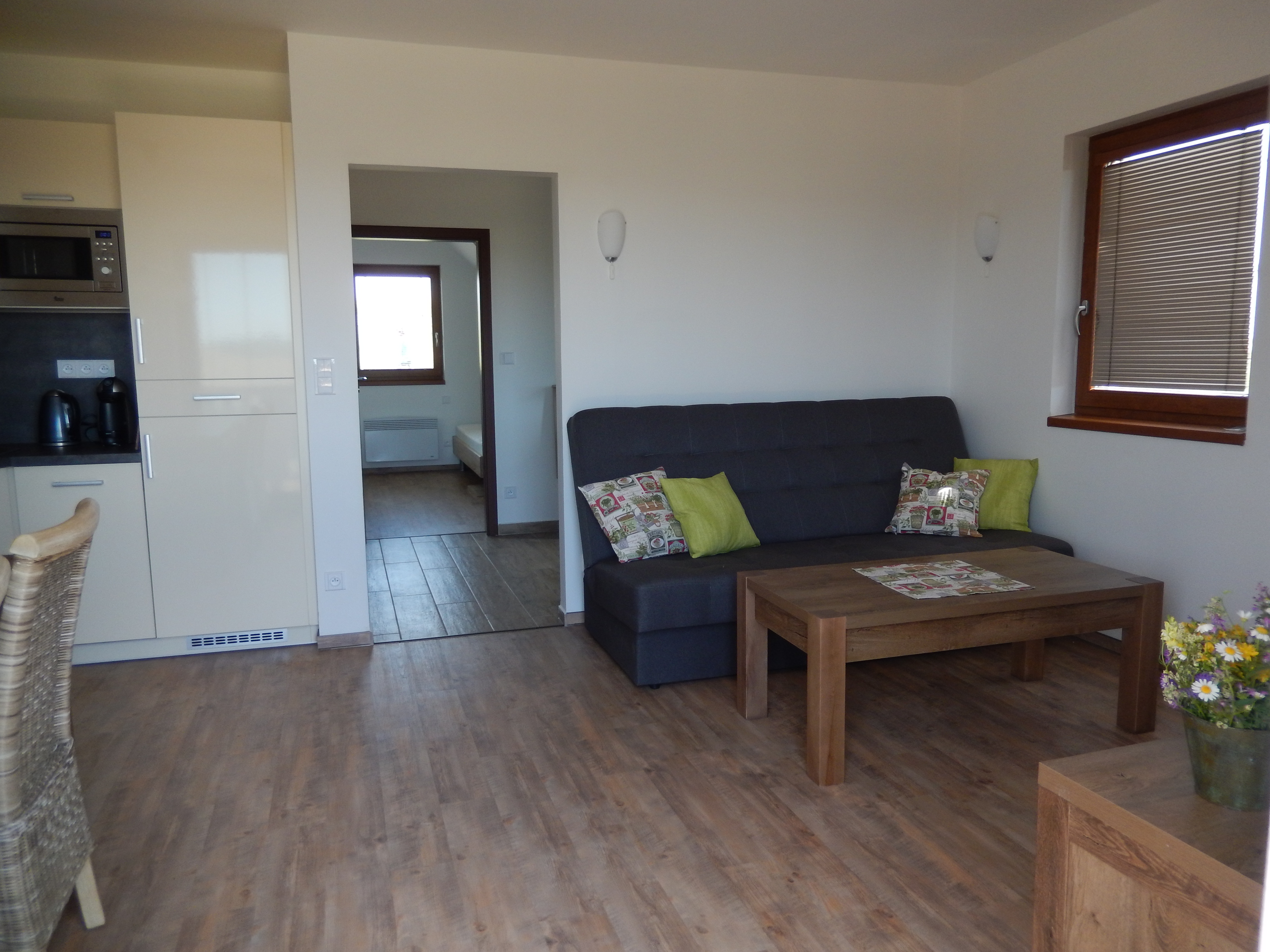 K dispozici jsou vám 4 apartmány pro 4 - 6 hostů. Každý apartmán má obývací pokoj s jídelní částí a plně vybavenou kuchyňskou linkou, koupelnu s rohovou vanou, ložnici se 4 lůžky, přistýlka je v obývacím pokoji. Apartmány jsou vybaveny hračkami pro děti. Na požádání připravíme dětskou jídelní židličku, či postýlku. K dispozici jsou venkovní uzamykatelné kóje pro uložení sportovního vybavení. Vedle apartmánů je soukromé dětské hřiště s houpačkami, skluzavkou, pískovištěm, podzemní rourou, trampolínou a ruskými kuželkami. V zimě je možné bobování přímo na louce u apartmánů. Vzdálenost Skiareálu Karlov je 6,5 km, Skiareál Čerťák je jen 800 m od apartmánů.