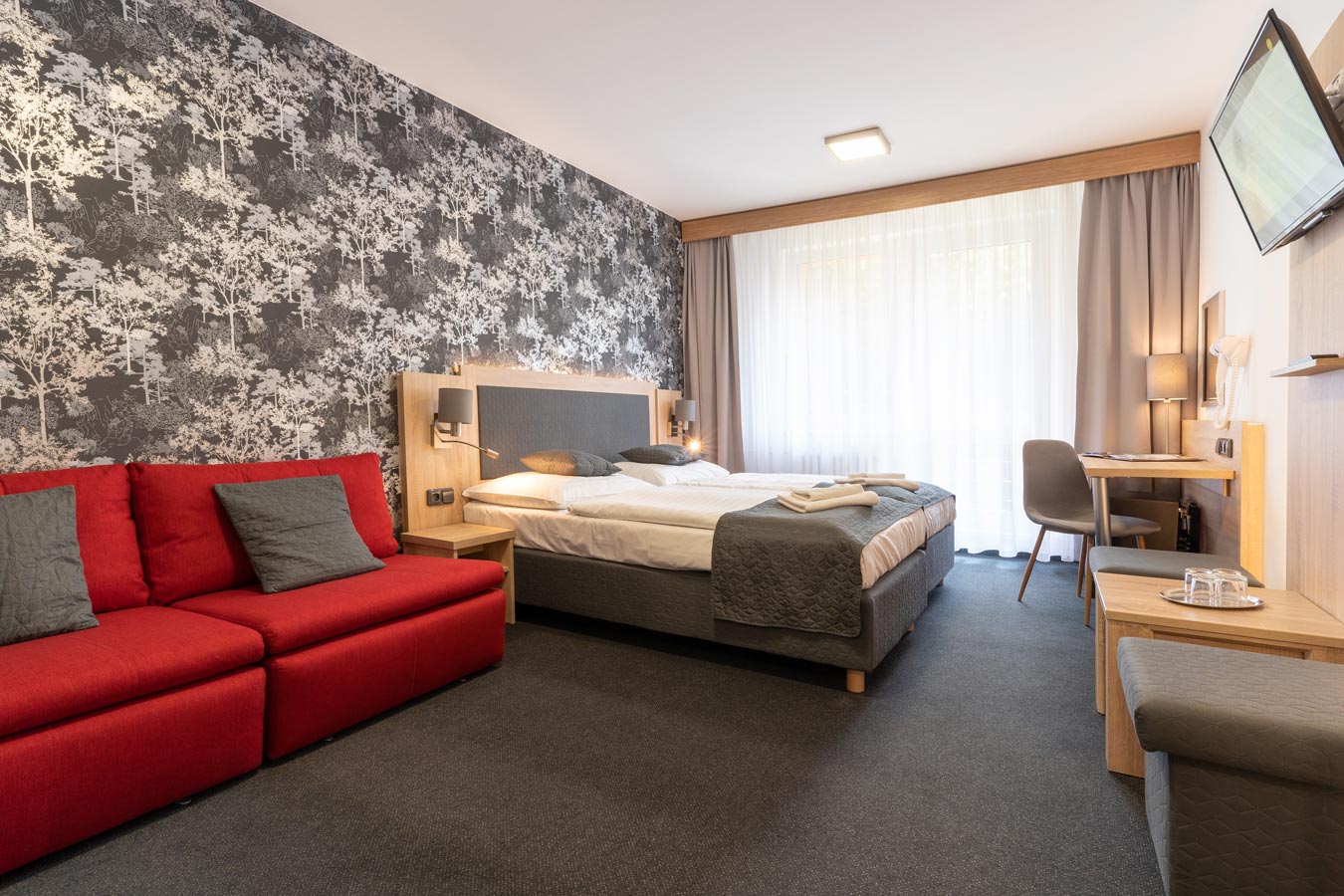 Hotel Kamzík s certifikací tři hvězdy Superior je skvělou volbou pro Vaše ubytování především k lyžování na Ski aréně Karlov, která se nachází v jeho bezprostřední blízkosti. Svým vybavením a kapacitou 210 lůžek je vhodný pro páry, rodinné dovolené, ale také pro firemní akce, školení, školní a ozdravné pobyty. Ubytování poskytujeme ve dvou až čtyřlůžkových pokojích s balkonem nebo bez balkonu a dvou rodinných pokojích. Oceníte chytrou TV, lednici, trezor. Máte k dispozici: parkoviště, vnitřní vyhřívaný bazén v létě s terasou, malý whirlpool, posilovnu, dětskou hernu, velkou tělocvičnu, workout hřiště, stolní tenis, denní bar, restauraci se zahrádkou. Navštívíte wellness centrum v interiéru i venkovní části s celoročním provozem. Užijete si masáže i bowling. V letní sezóně si zahrajete tenis či badminton, zdoláte lanové centrum před hotelem nebo se vydáte po některé z turistických tras.