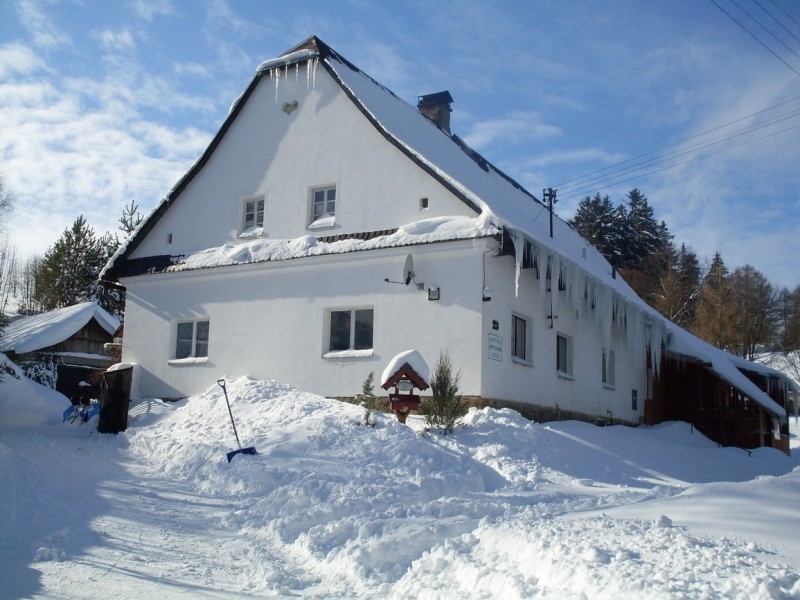 Pobyt na chalupě je možný v apartmánu 1/3 lůžka a 1/4lůžka každy s vlastní koupelnou se sprchovým koutem,umyvadlem ,toaletou s obvyklými doplńkynebo v jednotlivých pokojích.V ceně pobytu není obsaženo stravování,ale v přízemí má dům velkou společenskou místností s kuch. koutem na snadné vaření s vybavením na stolničení. Tři ložnice na patře s ústředním topením t.č. wifi, koupelnami s wc, minibar, výhled do zahrady. Parkoviště u chalupy s dobrým příjezdem po celý rok. Chalupa je vhodná pro pohyblivé,či sport. založené osoby, které si mohou užívat krásné hory a lyžování v zimě a v létě výlety a vodu na Slezské hartě, bazén s vyhřívanou vodou u nás na zahradě a ocení čisté ovzduší Jeseníků. V zimě lyžování na okraji naší obce na Čert´áku, nebo ve ski-areálech v Karlově,či na Kopřivné v Malé Morávce do 5 min vozem a 10 busem.