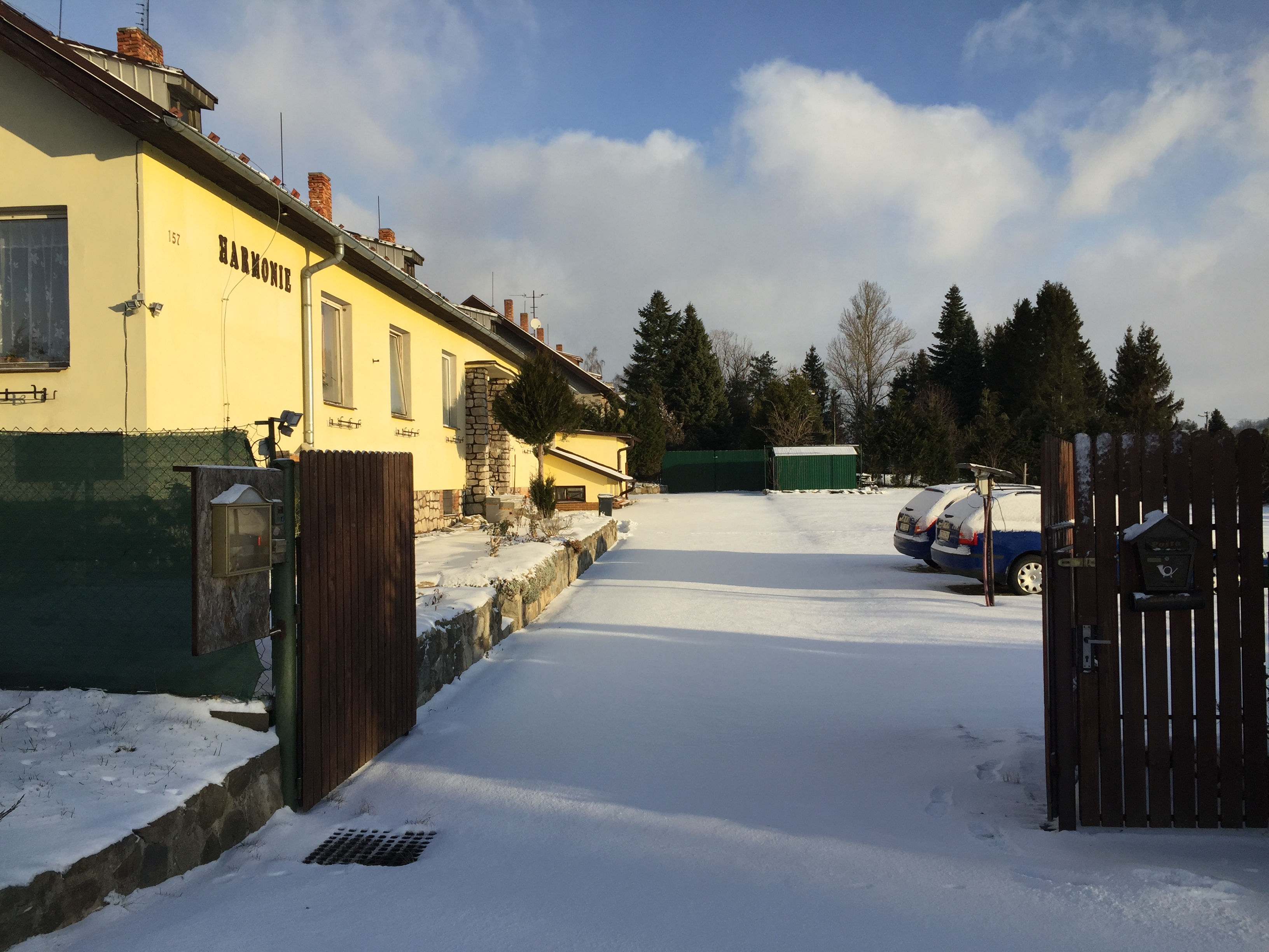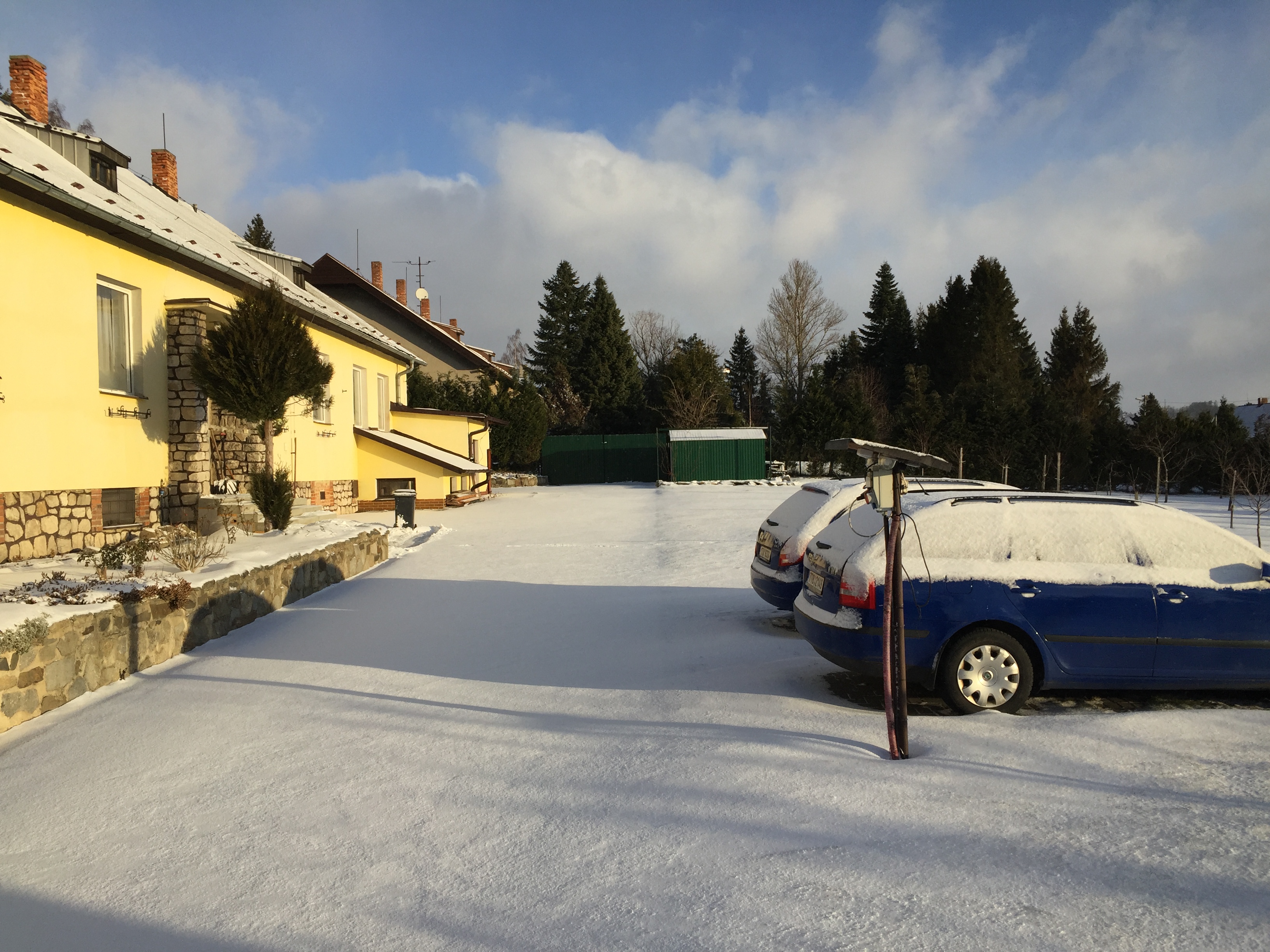 Výborná dostupnost z hlavní komunikace, parkování v uzavřeném areálu penzionu