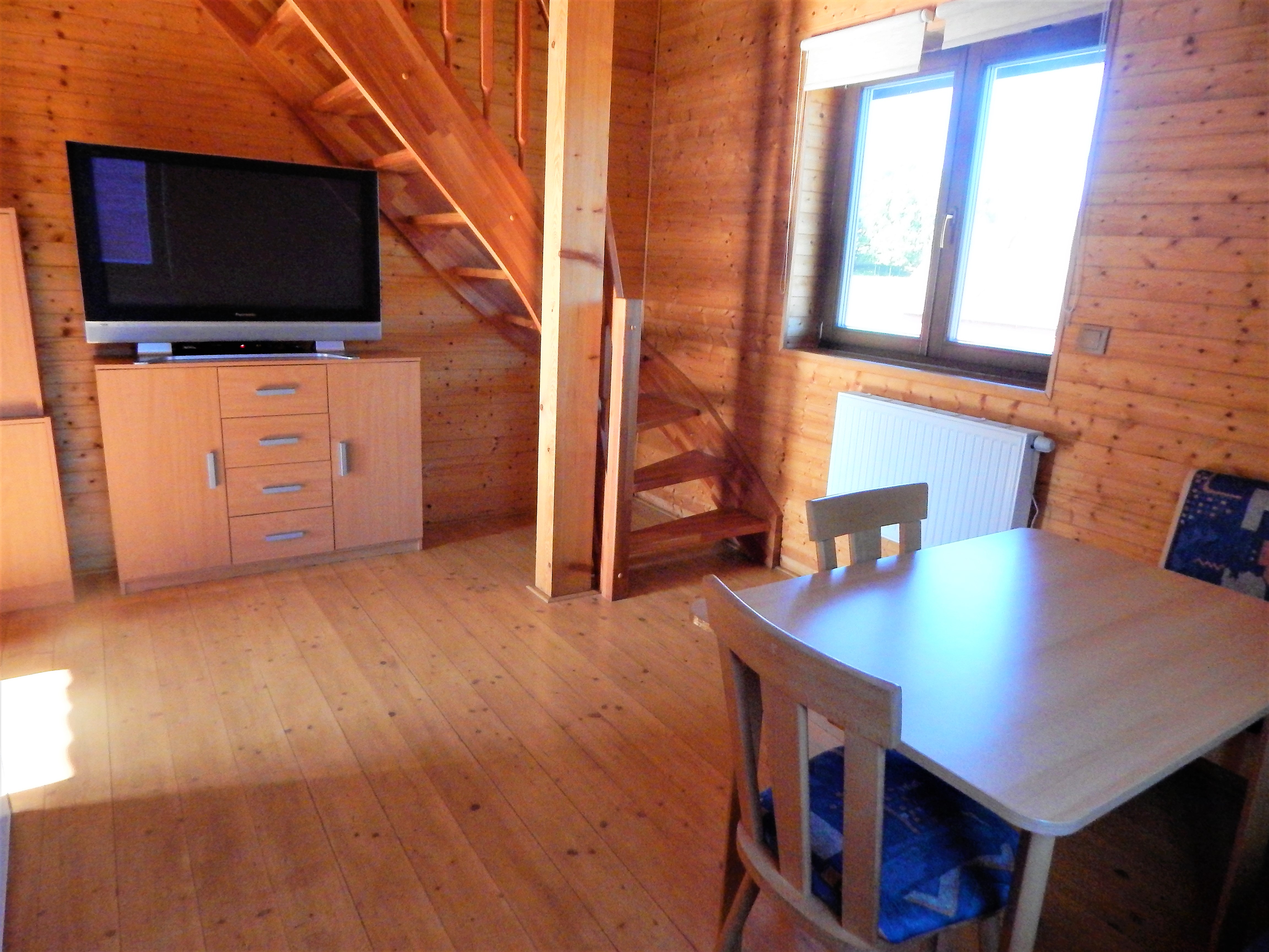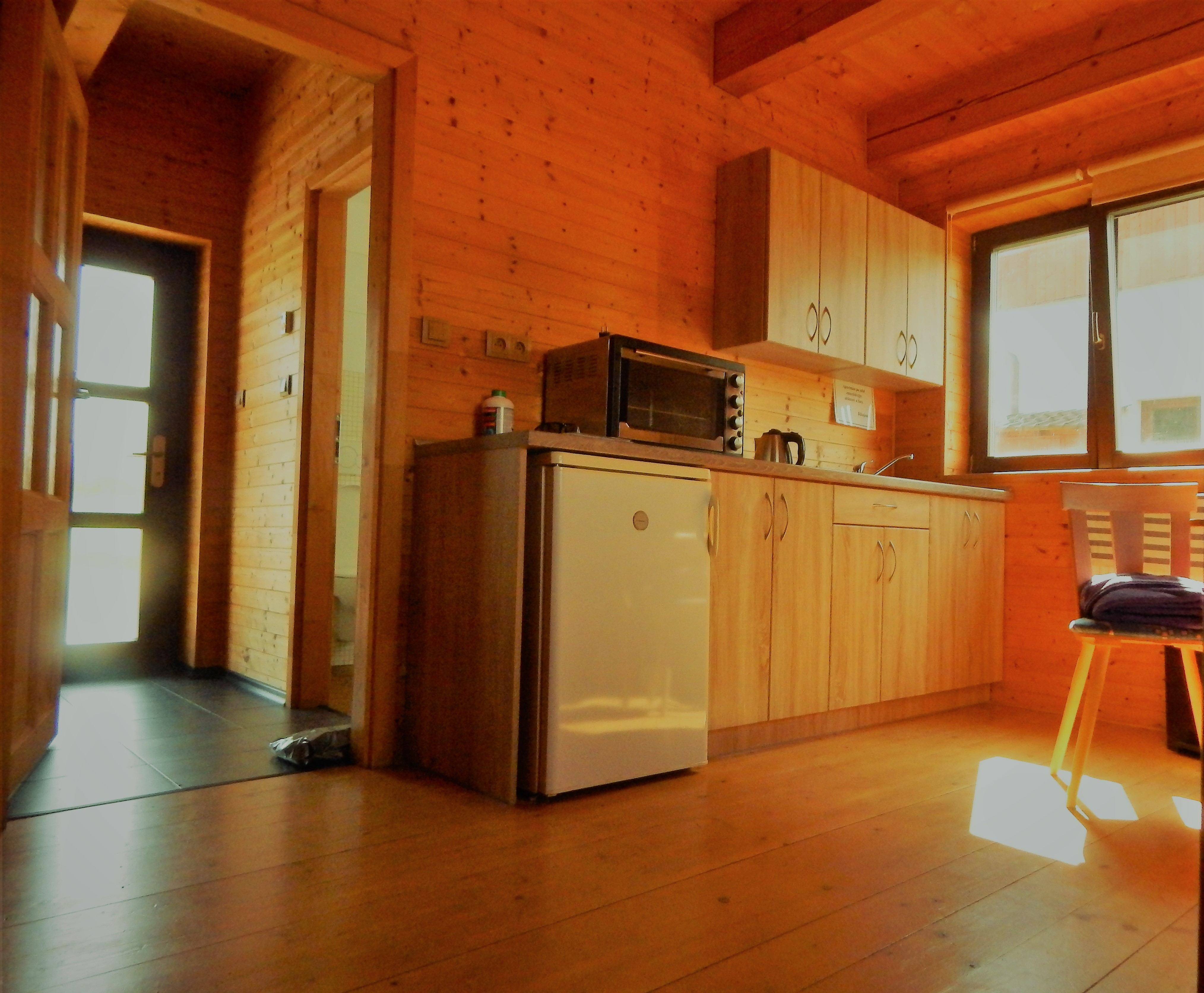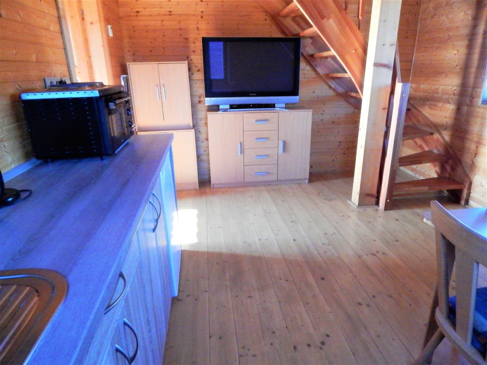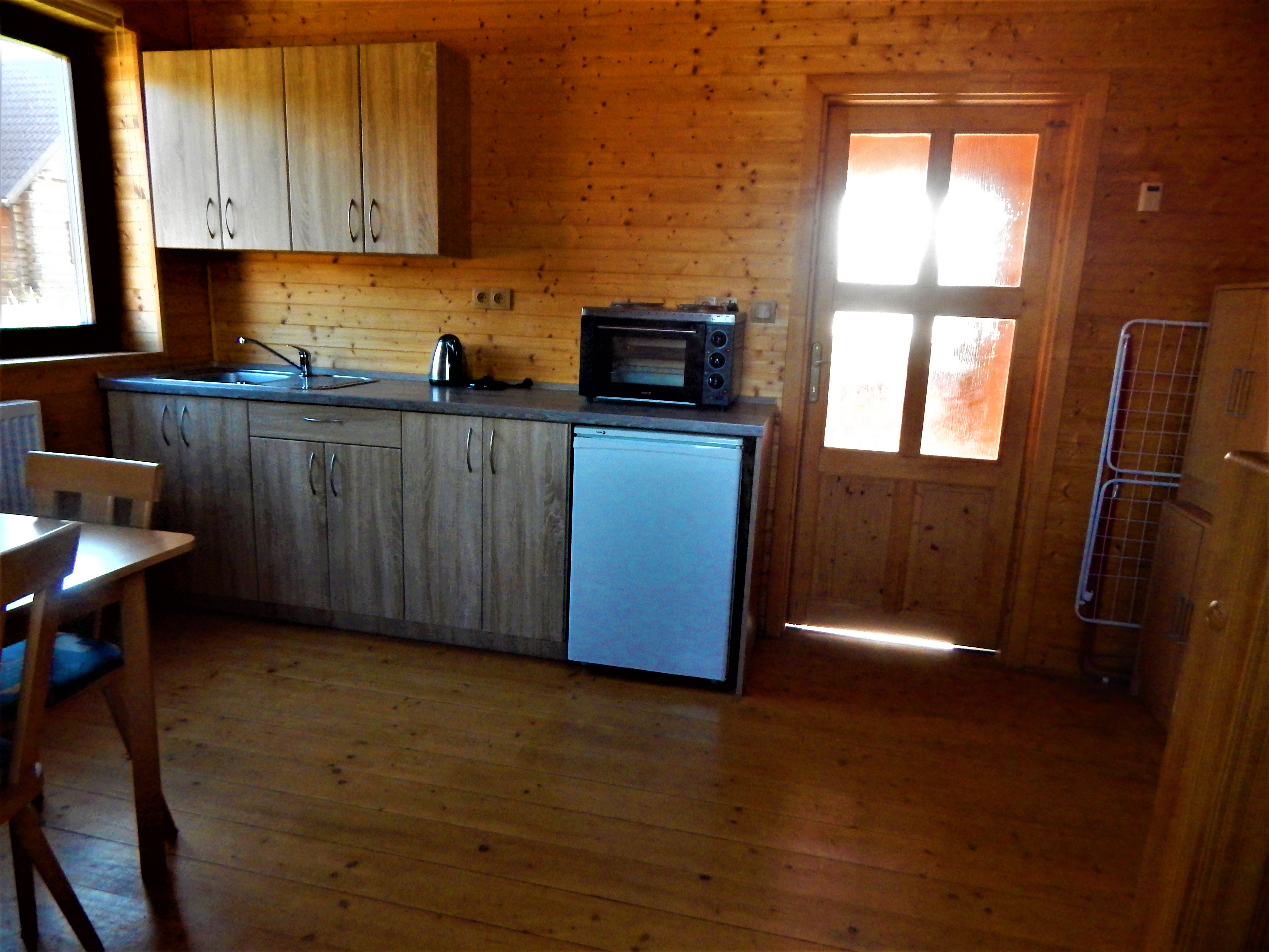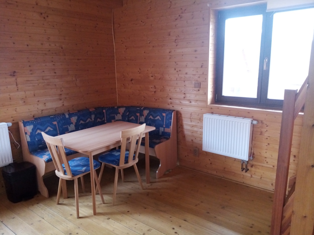 Chata má vybavenou kuchyňku s jídelním koutem, koupelnu s WC,