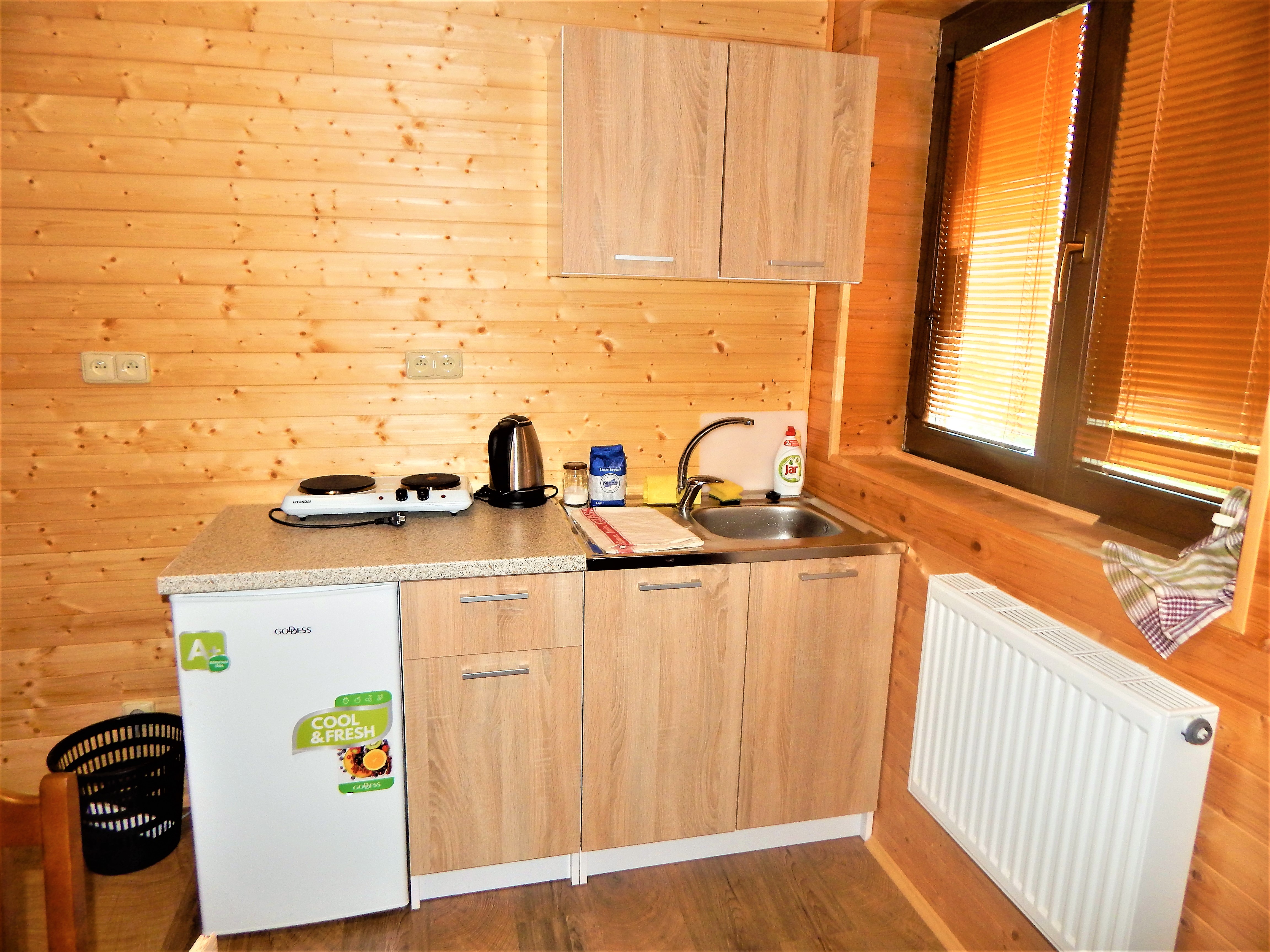 Chata má 2 samostatné apartmány, v každém je plně vybavená kuchyňka s jídelním