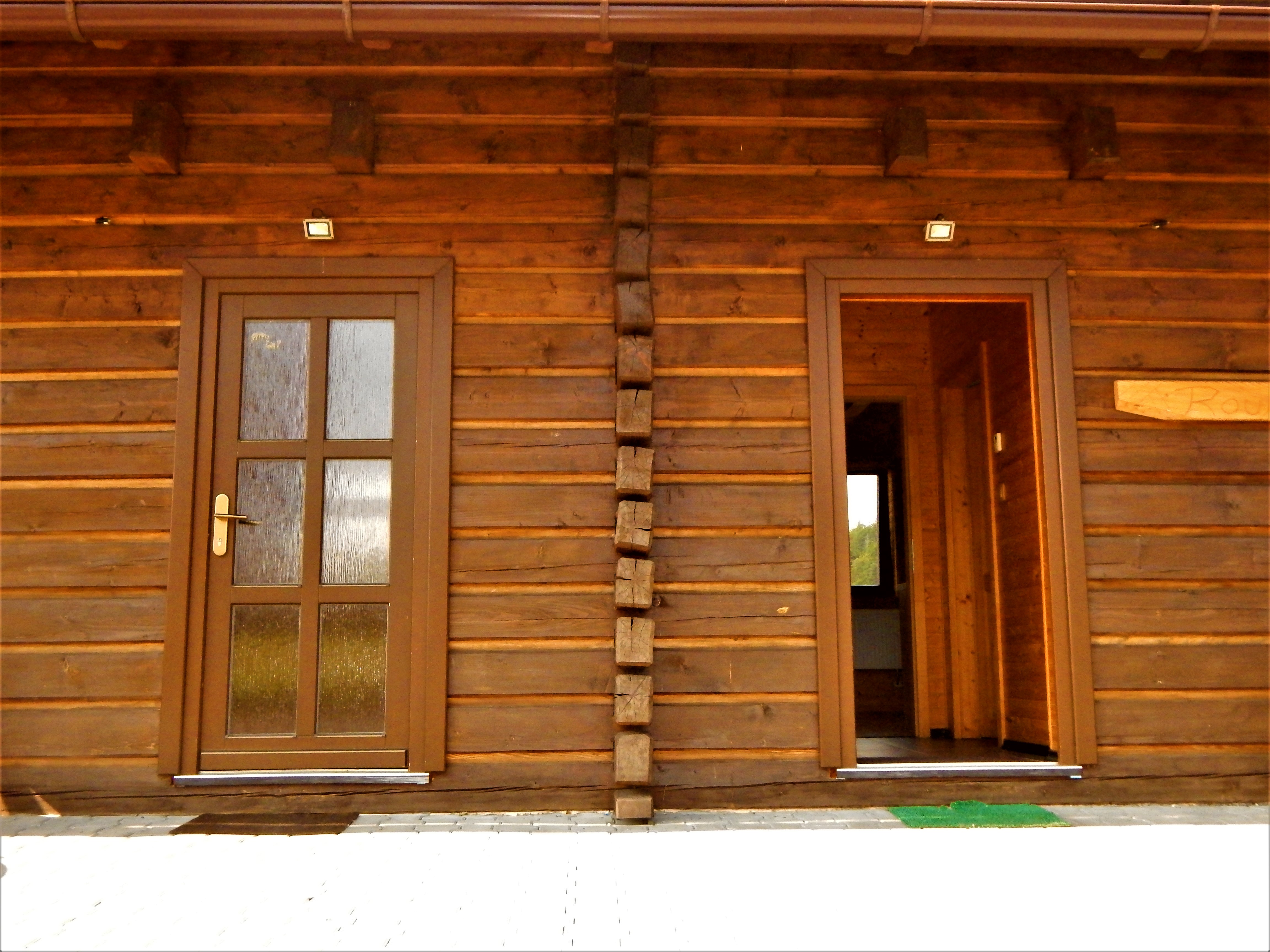 Parkování je bezplatné před roubenkou.