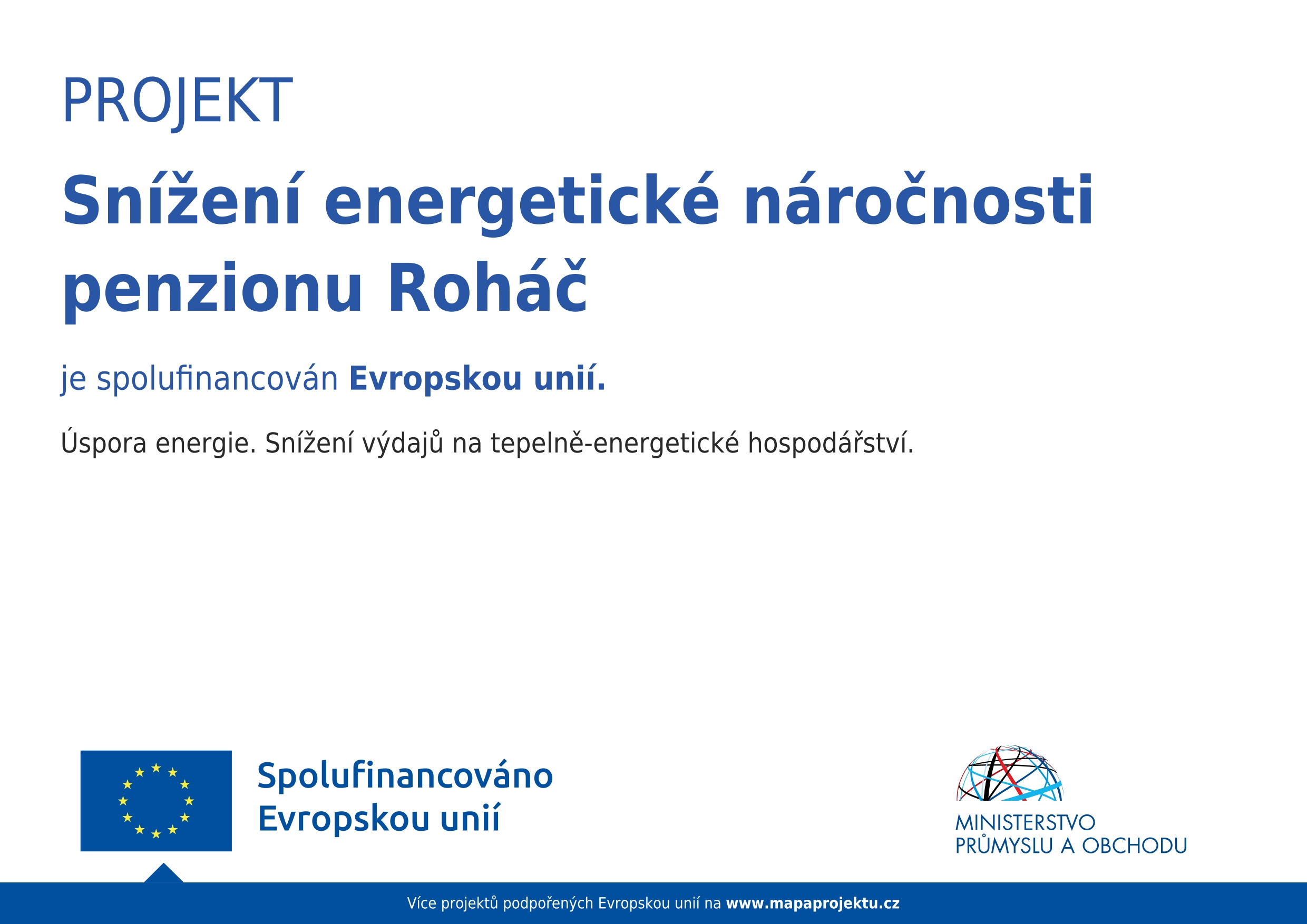 Objekt penzionu Roháč bude s pomocí EU a operačního programu Technologie a aplikace pro konkurenceschopnost modernizován s cílem snížit jeho energetickou náročnost.