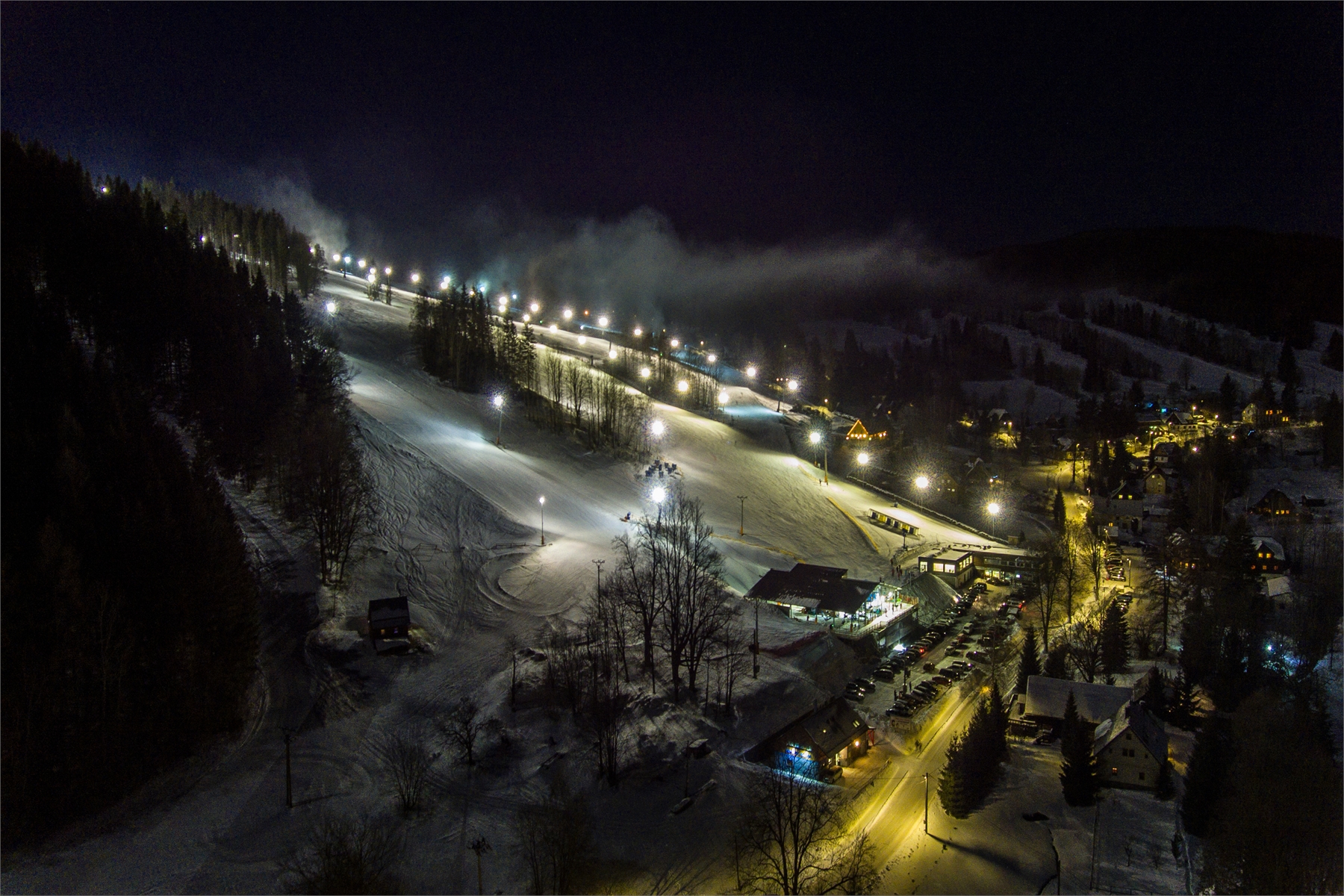 Zažijte neopakovatelnou atmosféru lyžování při noční obloze. A kdyby vás náhodou přemohla únava, naši barmani vás postaví opět na nohy v panoramtickém baru na sjezdovce.